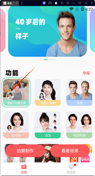 1、在功能區(qū)點擊【漫畫/專屬頭像】,進入制作頁面。