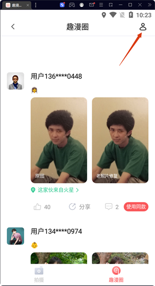 2、在趣漫圈頁(yè)面點(diǎn)擊右上角個(gè)人圖標(biāo),進(jìn)入個(gè)人設(shè)置頁(yè)面。
