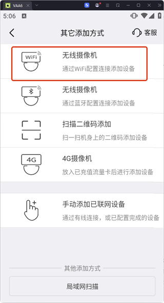 2、選擇【無線攝像機(通過WiFi配置連接添加設(shè)備)】,進入設(shè)備配置環(huán)節(jié)。