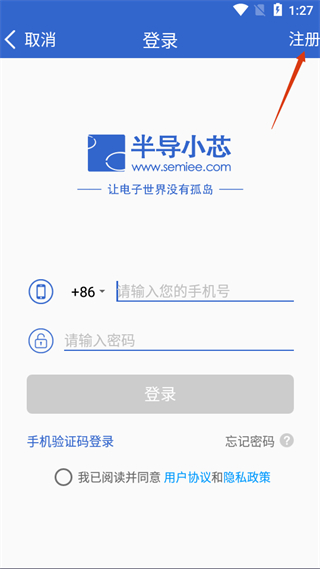 3、在登錄頁面點(diǎn)擊【注冊】,進(jìn)入注冊頁面。