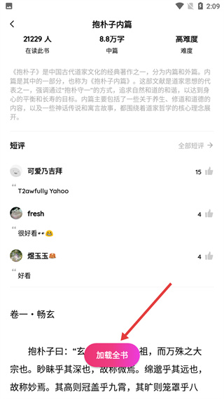 2、在書籍詳情頁(yè)面,點(diǎn)擊【加載全書】,進(jìn)入閱讀界面。
