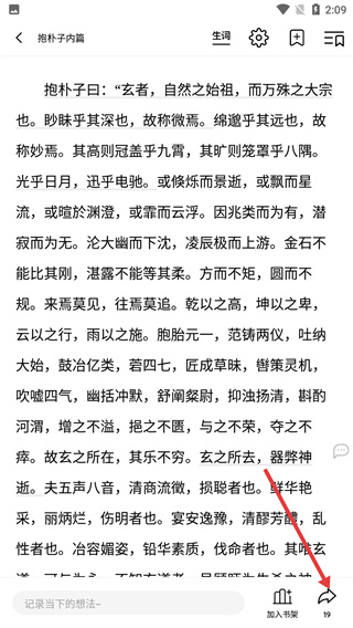 3、在閱讀界面右下角,點(diǎn)擊【分享】按鈕。