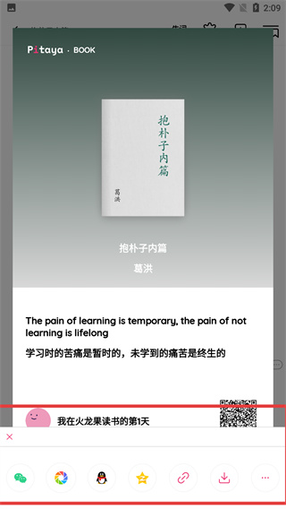 4、在分享選項(xiàng)彈窗中,選擇微信、QQ等任意渠道,完成閱讀分享操作。