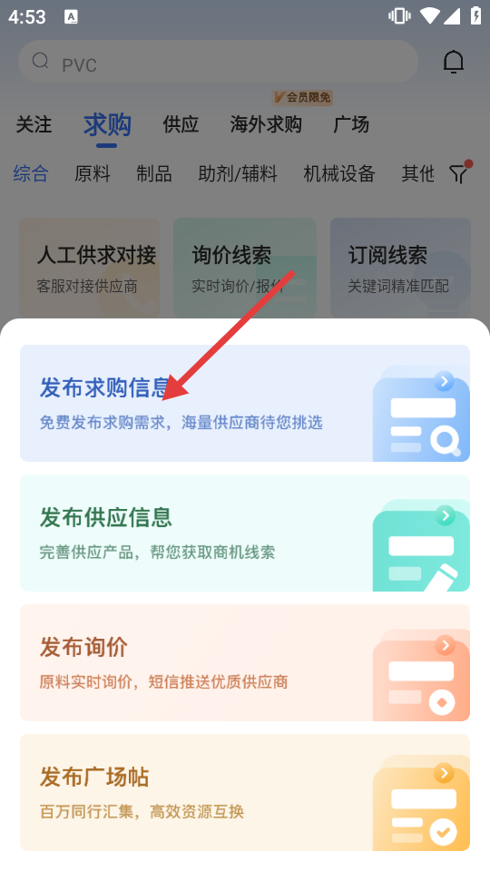 3、接著在彈出的界面中,選擇【發(fā)布求購信息】,進入登錄頁面。