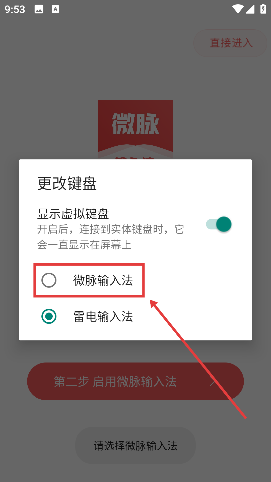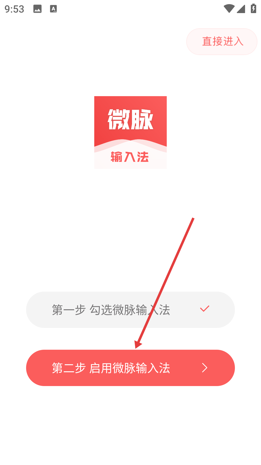 3、勾選完成后點擊【第二步啟用微脈輸入法】,進入更改鍵盤頁面。