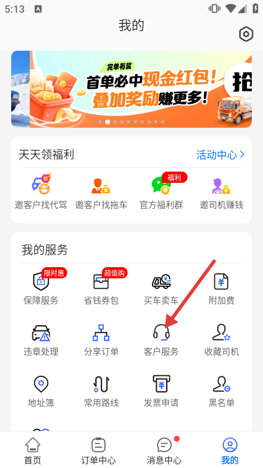 2、在“我的服務(wù)”板塊找到【客戶服務(wù)】入口。