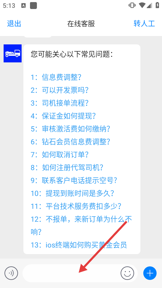 4、進入在線客服界面,可查看常見問題列表,也可在底部輸入框中輸入問題,進行咨詢交流。