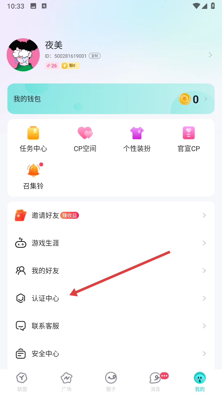 2、在個(gè)人頁(yè)面中找到【認(rèn)證中心】并點(diǎn)擊,進(jìn)入后查看賬號(hào)安全相關(guān)選項(xiàng)。
