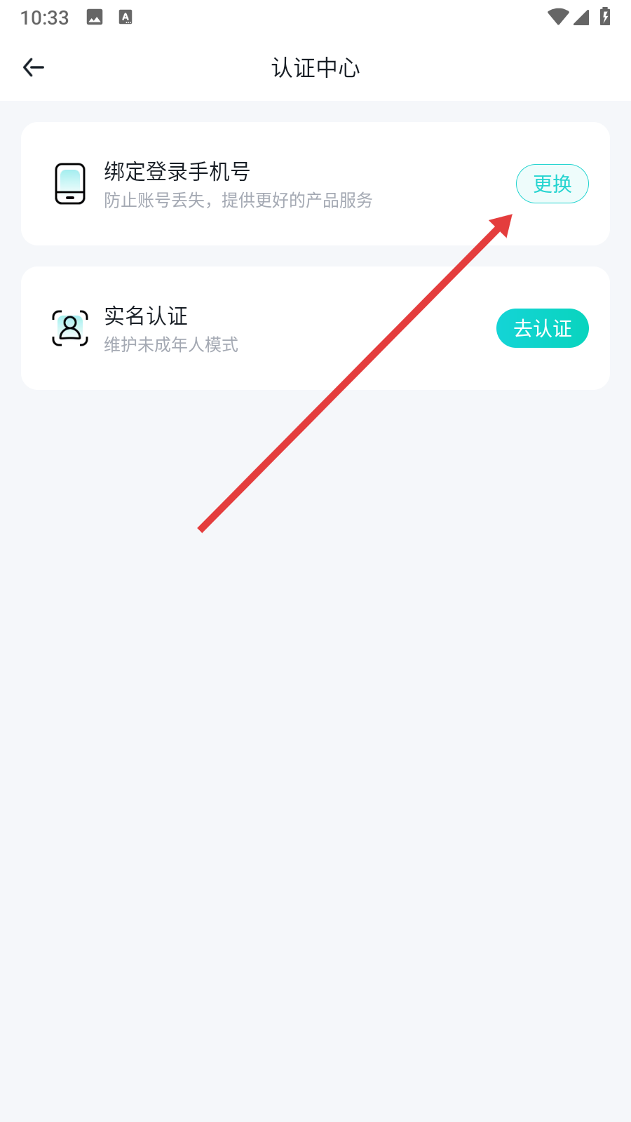 3、進(jìn)入【認(rèn)證中心】,找到【綁定登錄手機(jī)號(hào)】旁的【更換】按鈕。