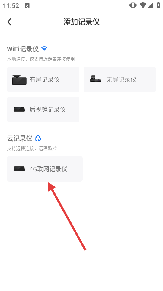 2、在添加記錄儀頁面選擇【4G聯(lián)網(wǎng)記錄儀】,觸發(fā)登錄提示彈窗。
