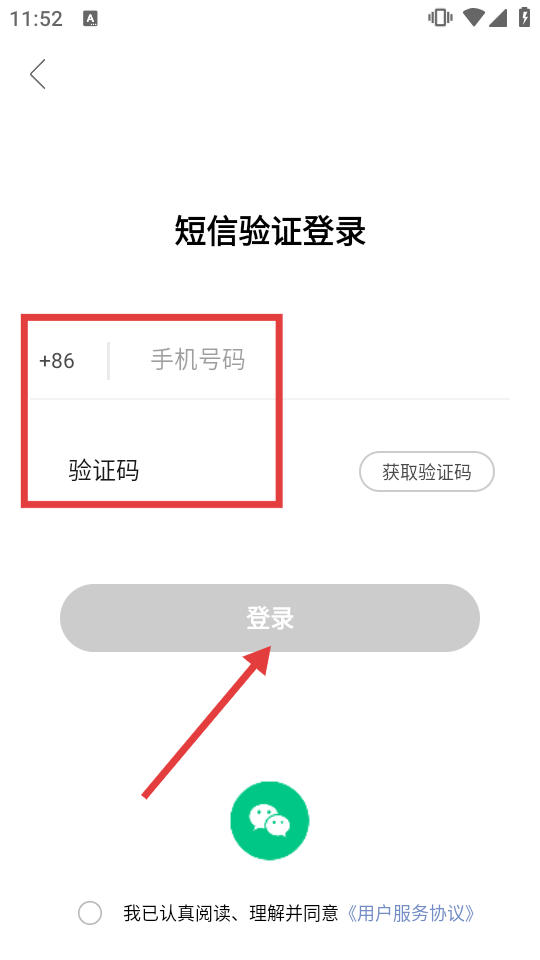 4、在短信驗證登錄頁面輸入手機號碼和驗證碼,勾選同意《用戶服務(wù)協(xié)議》后點擊【登錄】,完成登錄后可繼續(xù)添加記錄儀操作。