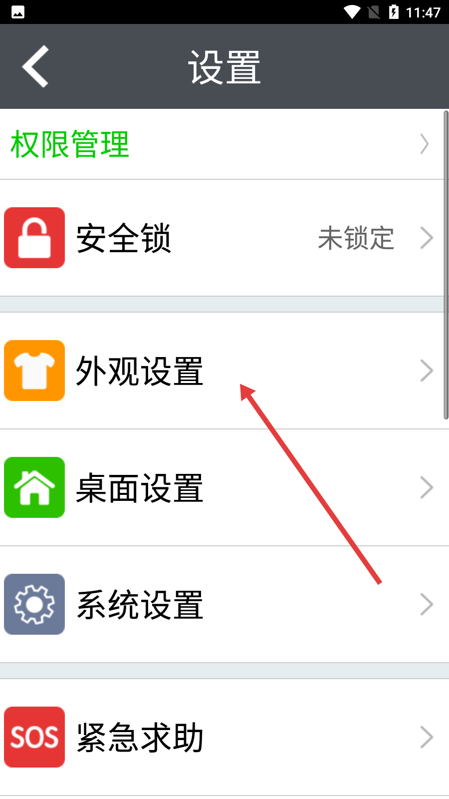 2、進(jìn)入【設(shè)置】后,找到【外觀設(shè)置】并點(diǎn)擊。