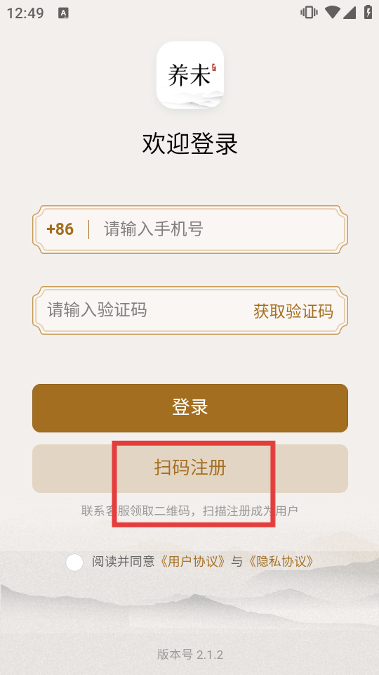 3、在歡迎登錄頁面點擊【掃碼注冊】,進(jìn)入掃碼頁面。