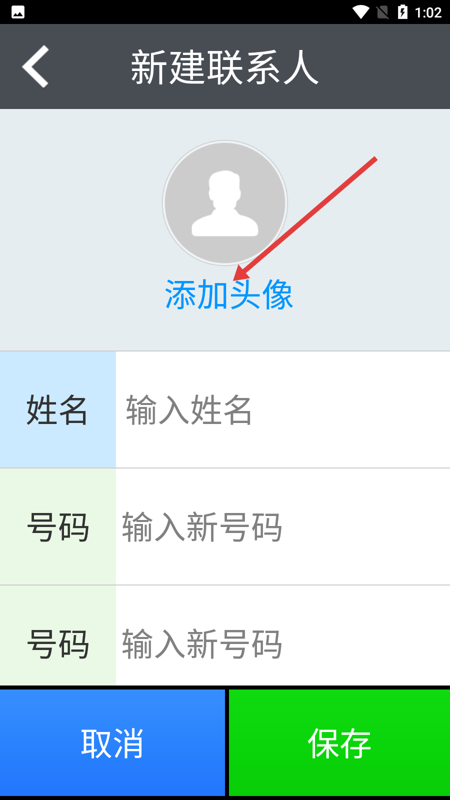 3、在【新建聯(lián)系人】頁(yè)面,點(diǎn)擊【添加頭像】按鍵。