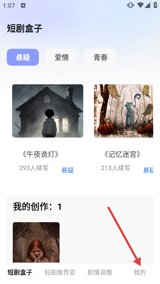 2、在短劇盒子頁(yè)面點(diǎn)擊底部【我的】,進(jìn)入個(gè)人頁(yè)面。