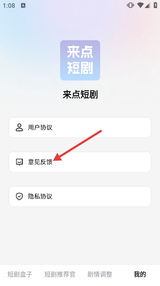 3、在個(gè)人頁(yè)面點(diǎn)擊【意見(jiàn)反饋】,進(jìn)入意見(jiàn)反饋?lái)?yè)面。