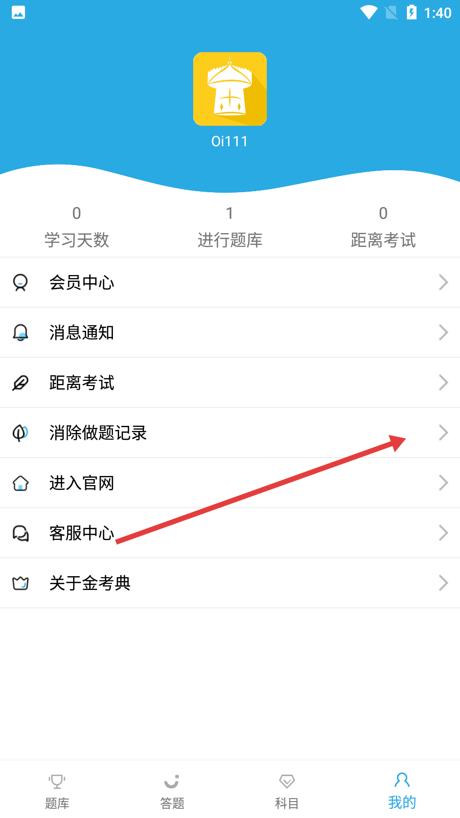 2、在個人頁面中找到【消除做題記錄】并點擊,進(jìn)入清除選項頁面。
