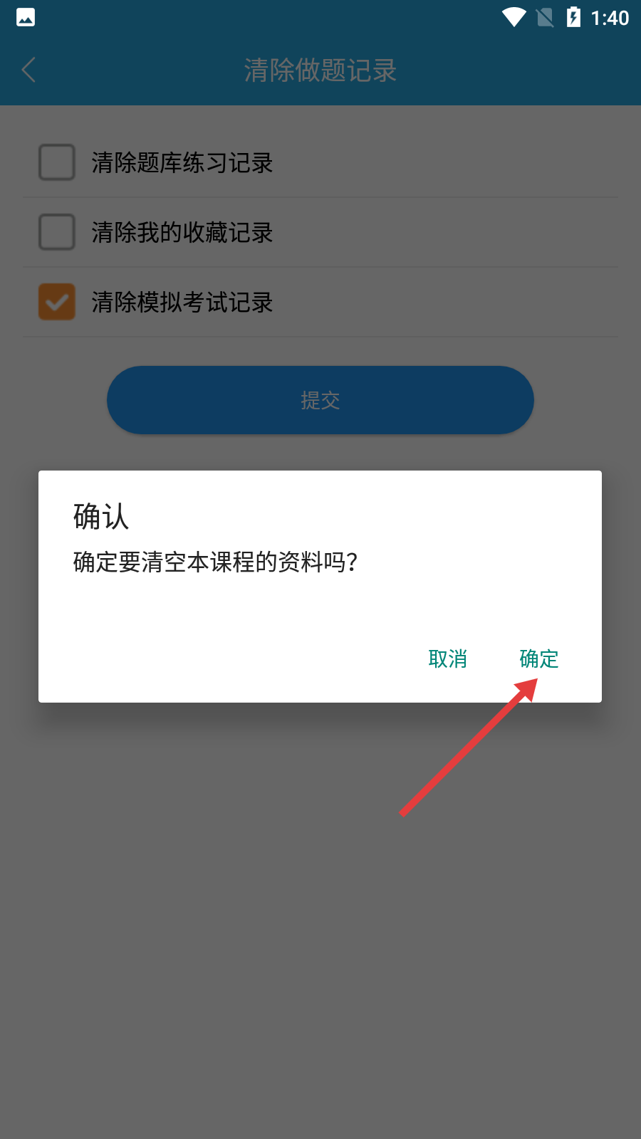 4、在確認(rèn)彈窗中點擊【確定】,即可完成本課程資料的清空操作。