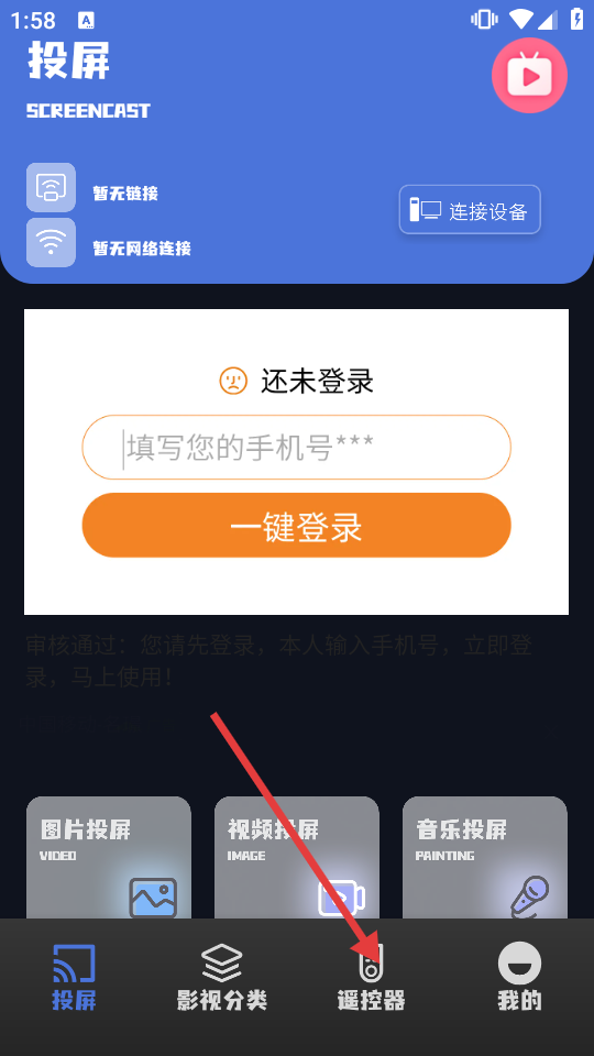 1、在投屏頁面點(diǎn)擊底部【遙控器】,進(jìn)入遙控器頁面。