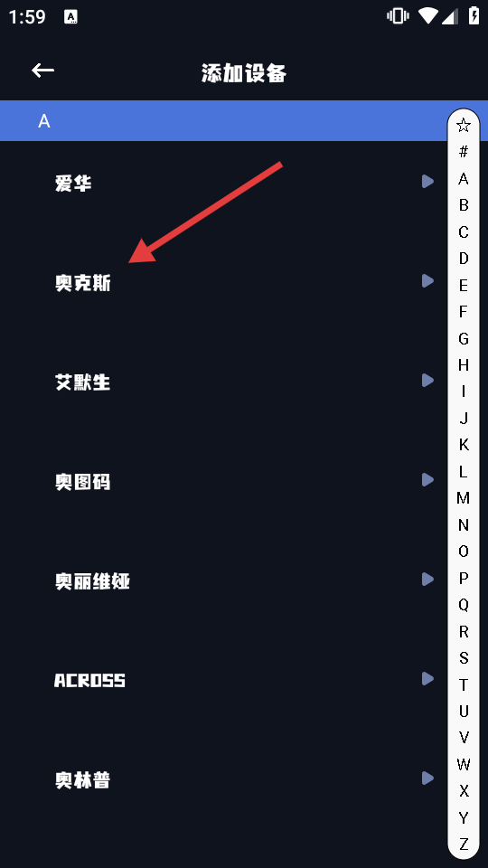 4、在品牌選擇頁面選擇電視機(jī)品牌(如奧克斯),完成電視機(jī)設(shè)備添加操作。