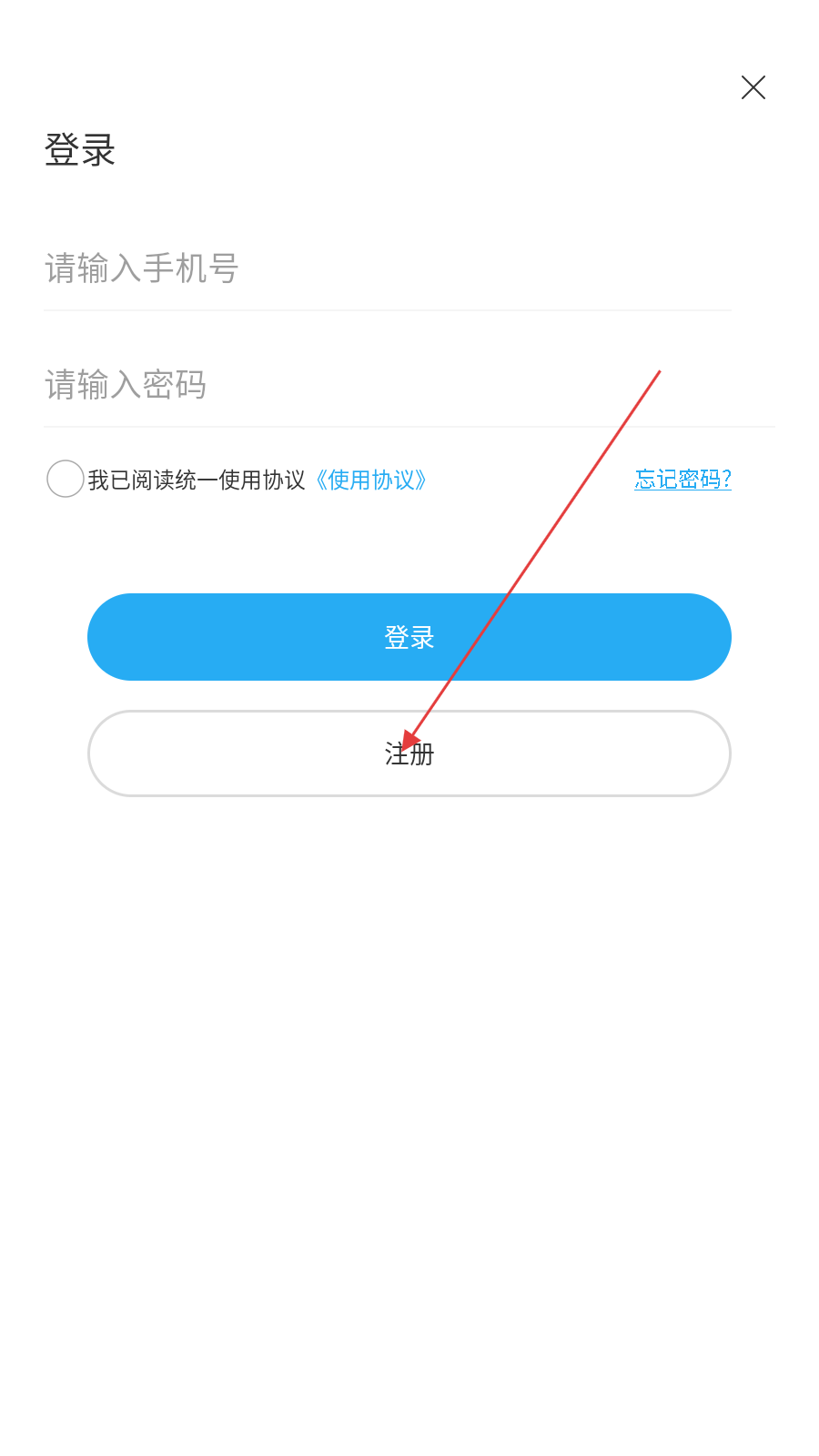 3、在登錄界面,若還未注冊(cè)賬號(hào),點(diǎn)擊【注冊(cè)】,可進(jìn)入注冊(cè)界面。