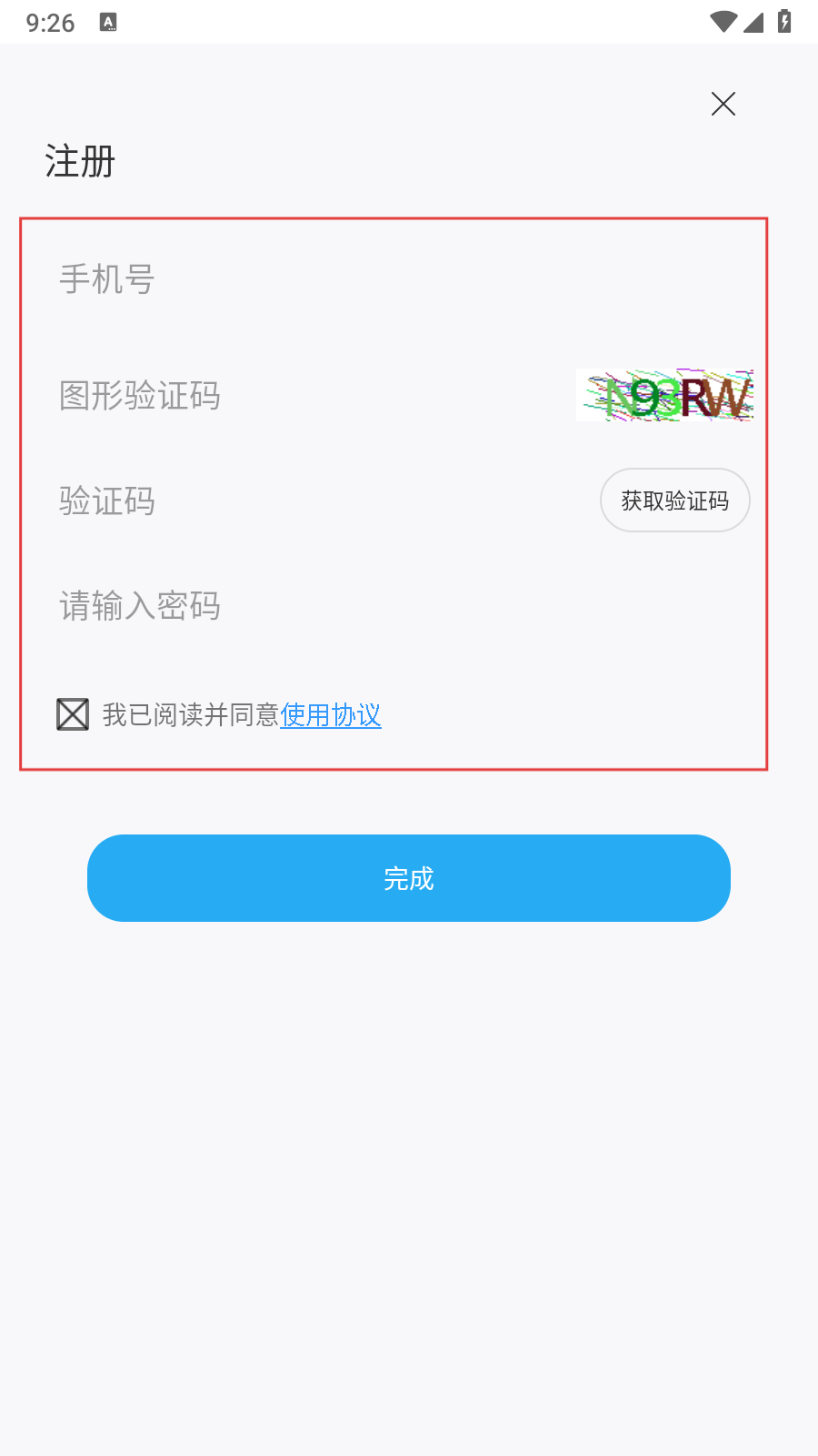 4、在注冊(cè)界面,依次輸入手機(jī)號(hào)、圖形驗(yàn)證碼、獲取并輸入驗(yàn)證碼,設(shè)置密碼后點(diǎn)擊【完成】,即可完成注冊(cè)流程,注冊(cè)后可進(jìn)行登錄操作,使用星云社區(qū)的各項(xiàng)功能。