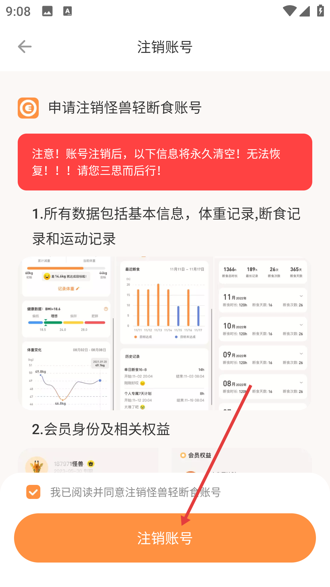 3、在注銷賬號(hào)頁(yè)面閱讀注銷須知,勾選同意協(xié)議。