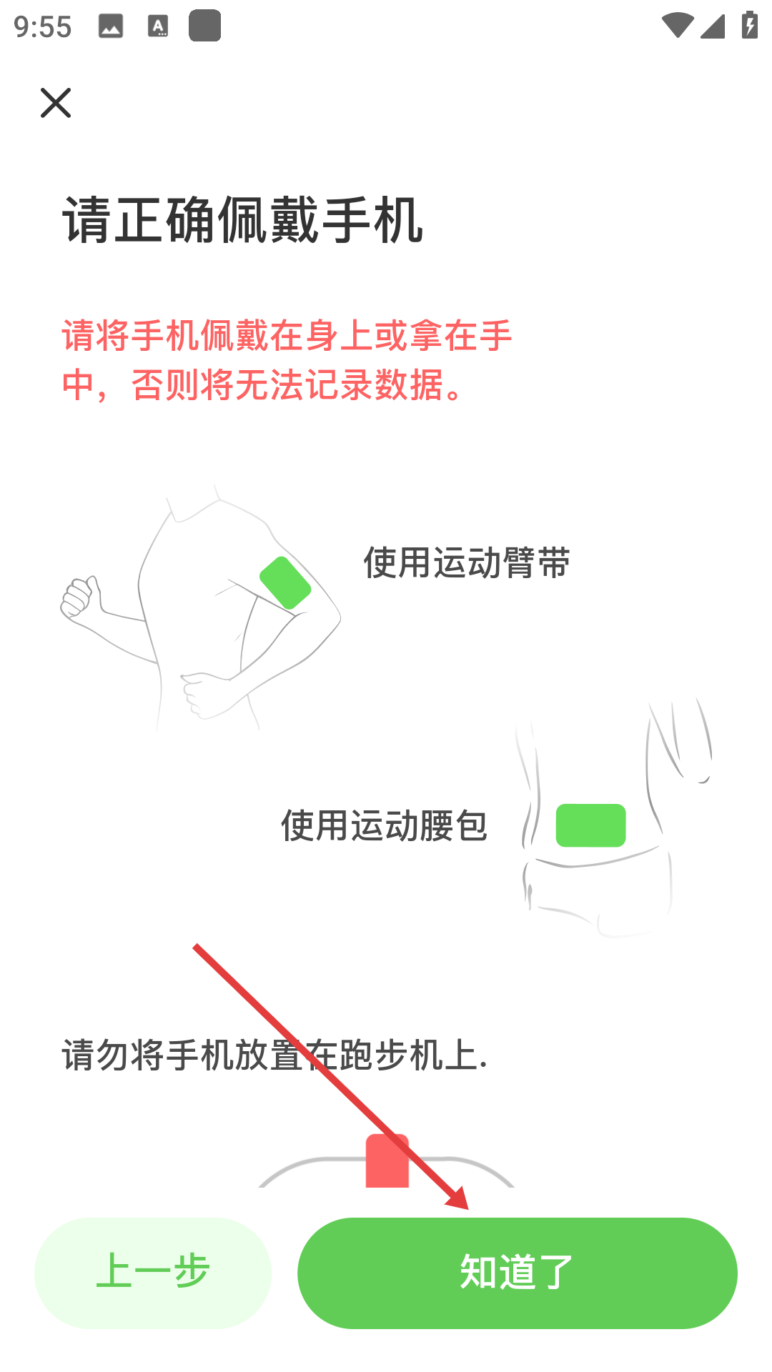 4、在手機佩戴提示頁面點擊【知道了】,完成提示確認。