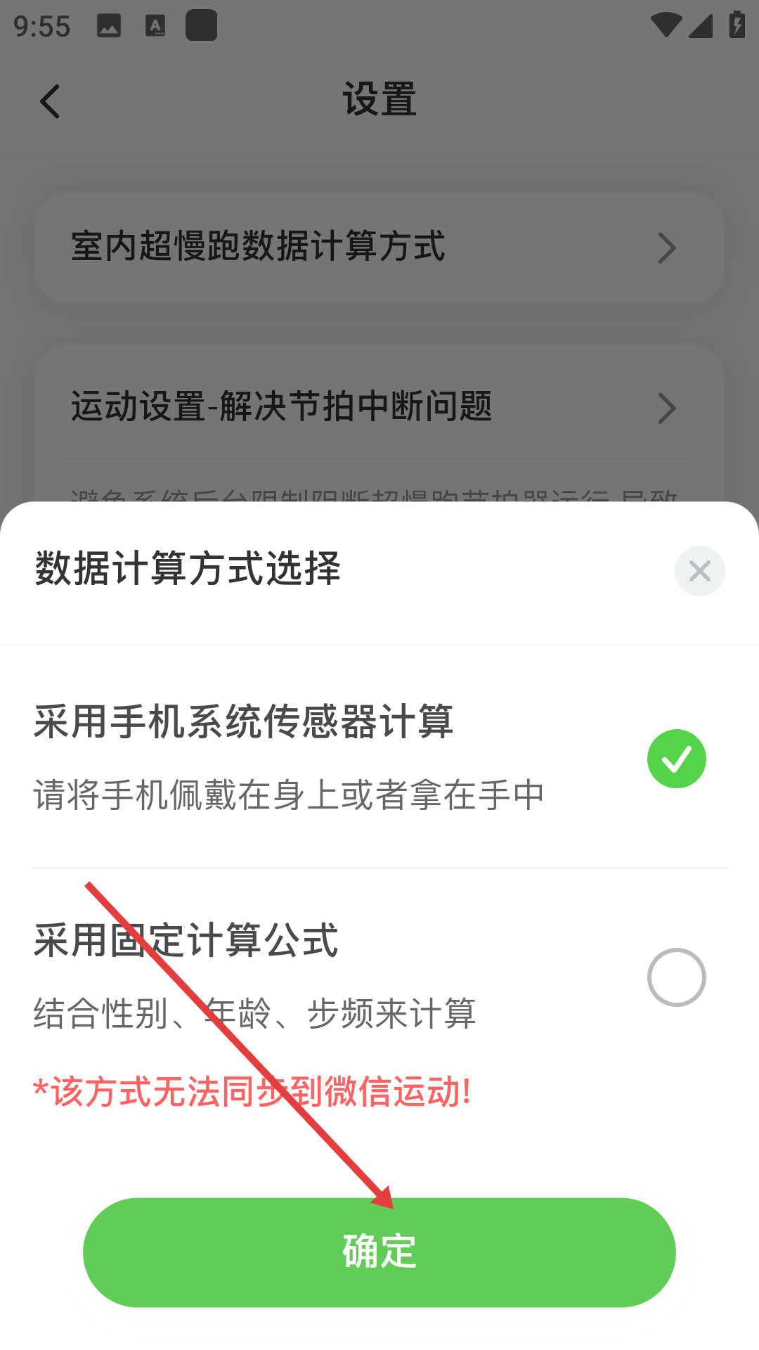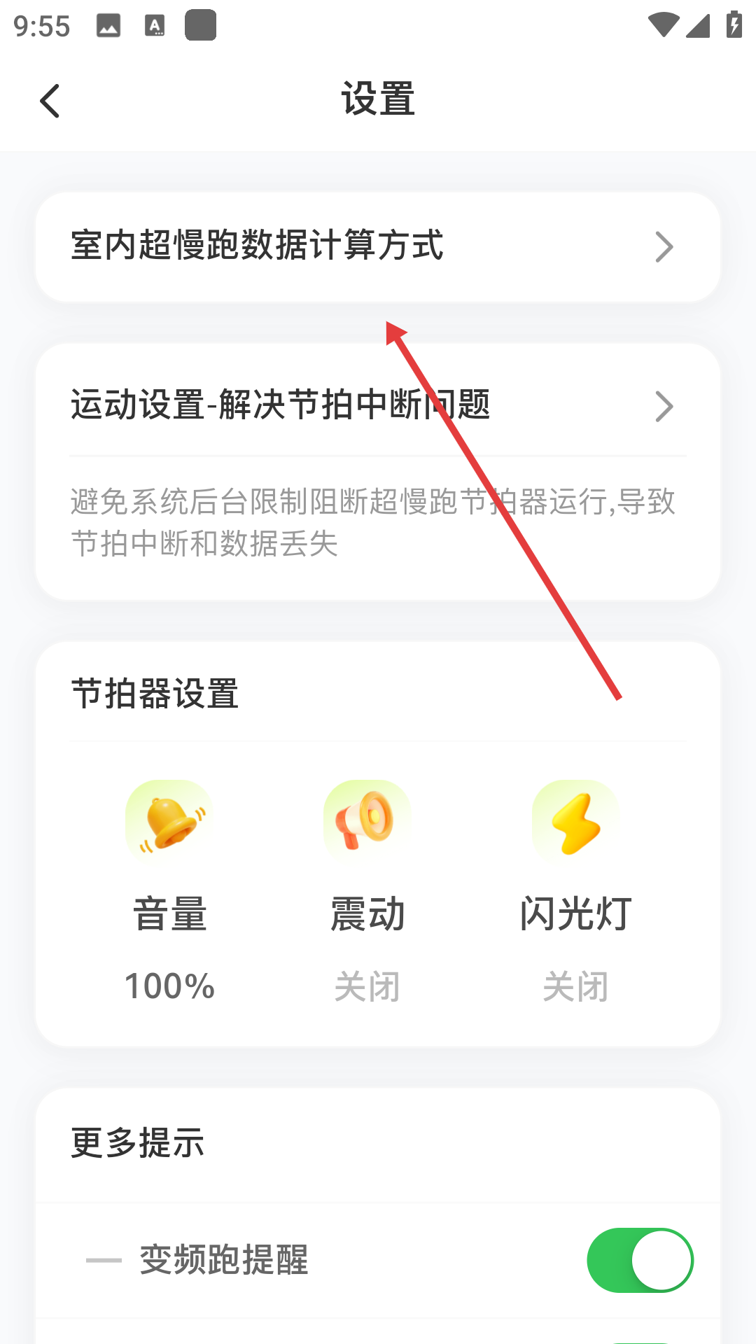 2、在設置頁面點擊【室內超慢跑數(shù)據(jù)計算方式】,進入數(shù)據(jù)計算方式設置頁面。