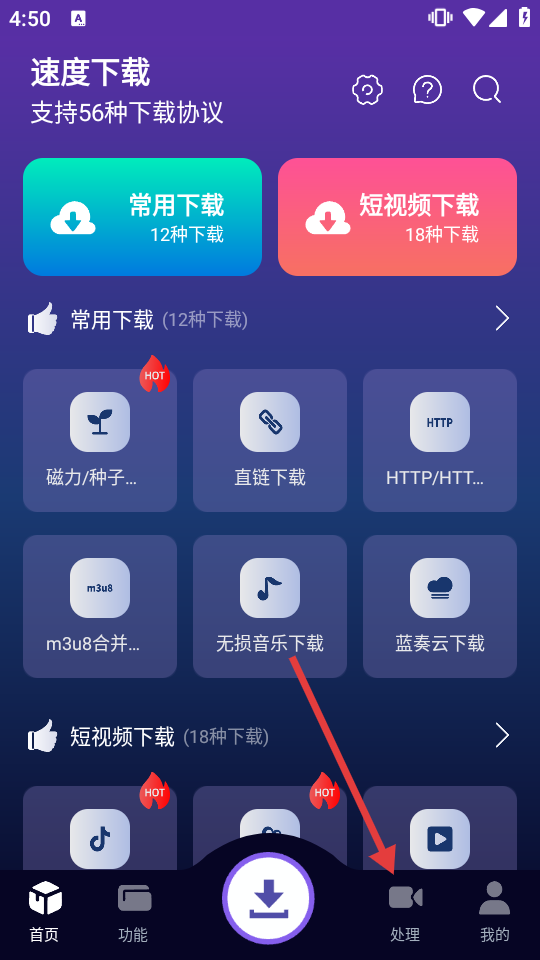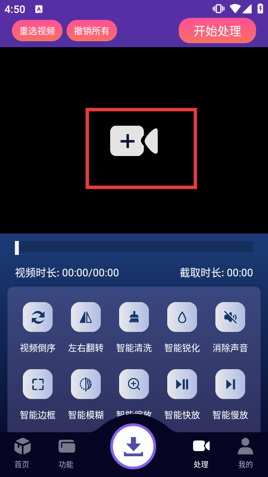 1、點擊底部【處理】,進(jìn)入視頻處理頁面。