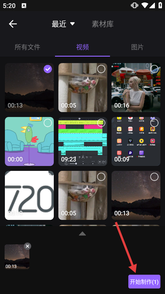 2、點(diǎn)擊【開(kāi)始制作(1)】,進(jìn)入視頻編輯頁(yè)面。