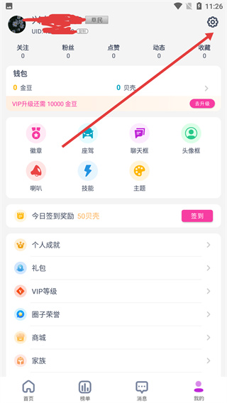 2、在個(gè)人中心頁(yè)面點(diǎn)擊右上角設(shè)置圖標(biāo)。