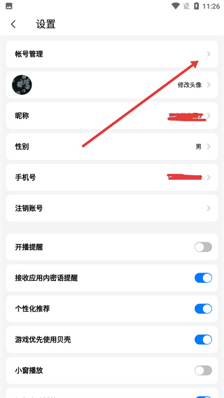 3、在設(shè)置頁(yè)面點(diǎn)擊【賬號(hào)管理】。