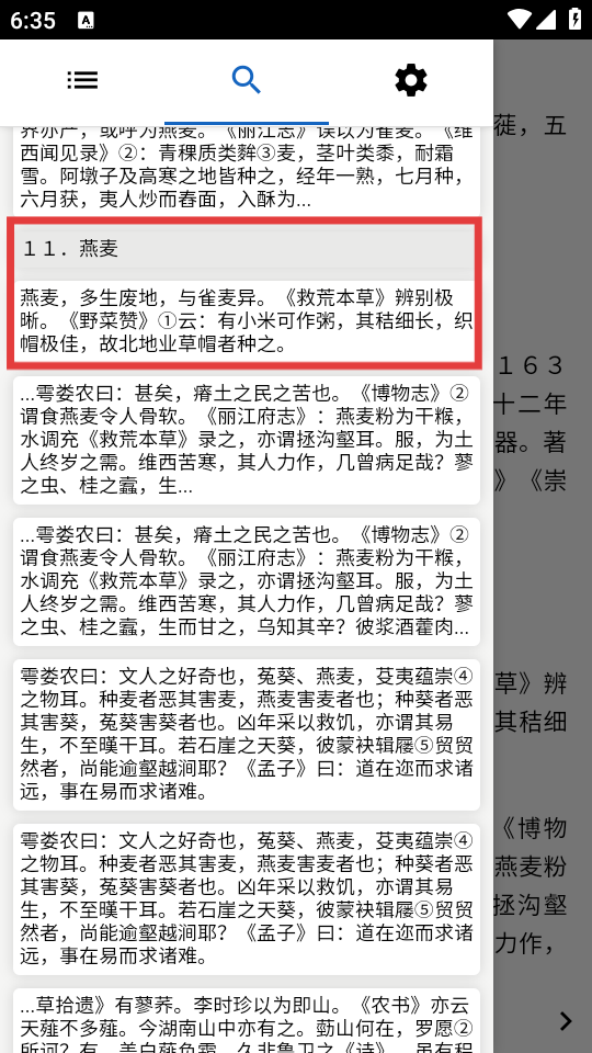 3、在搜索結(jié)果中找到【燕麥】條目,點擊進入。