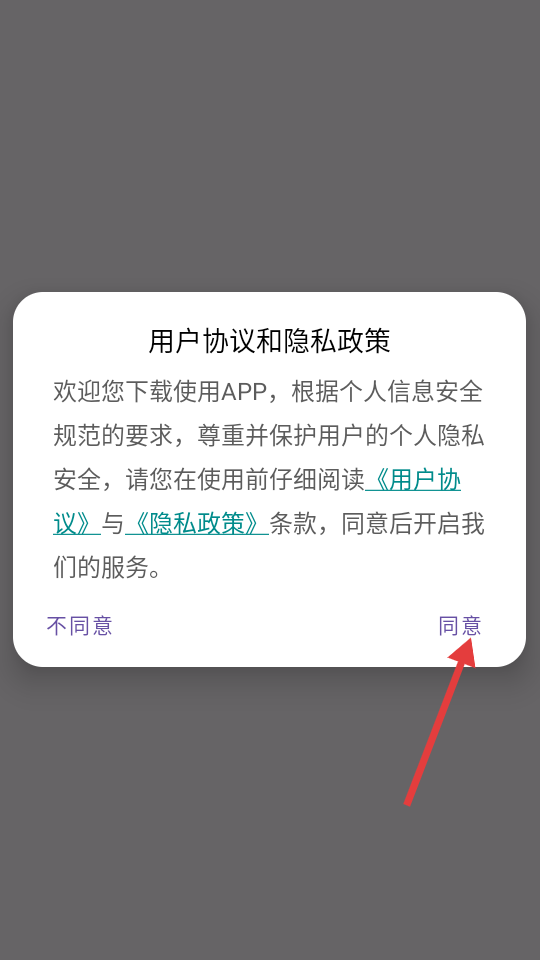 1、在用戶協(xié)議和隱私政策彈窗中點(diǎn)擊【同意】。