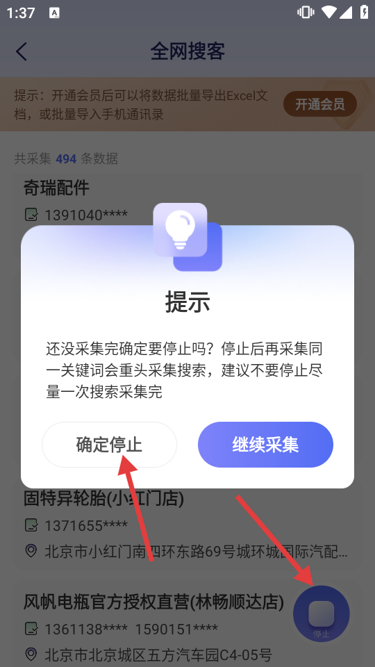 3、采集過(guò)程中如需停止,在提示彈窗中點(diǎn)擊【確定停止】。