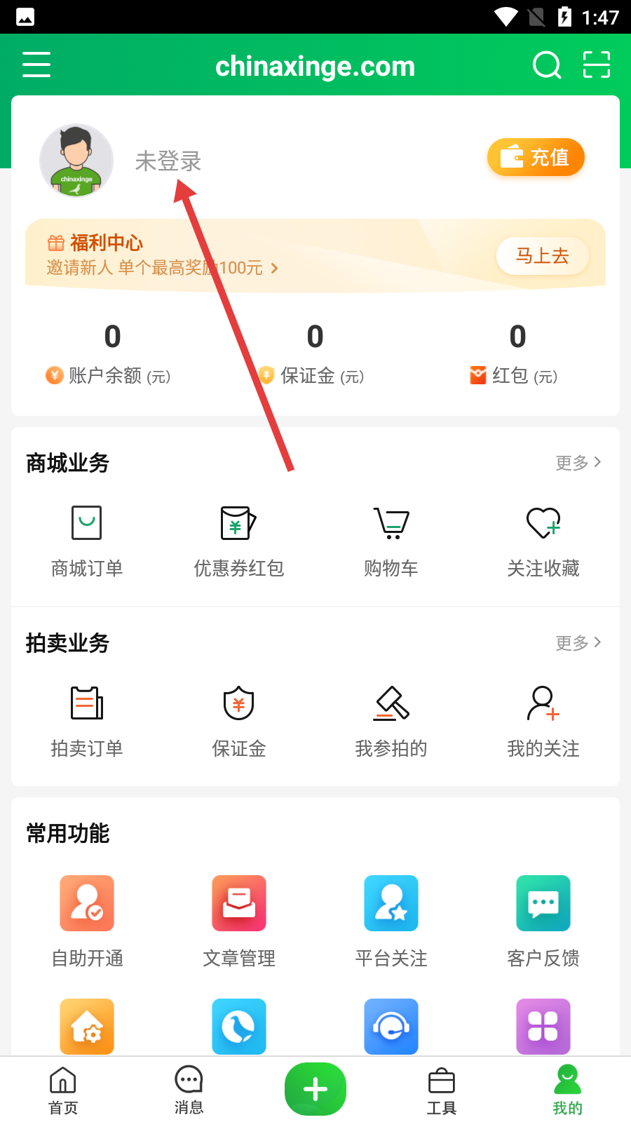 2、在個人中心頁面點擊“未登錄”區(qū)域,進入登錄界面。