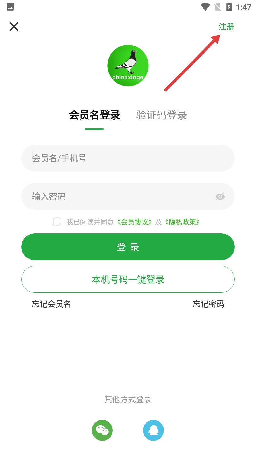 3、在登錄界面點擊右上角【注冊】,進入注冊頁面。
