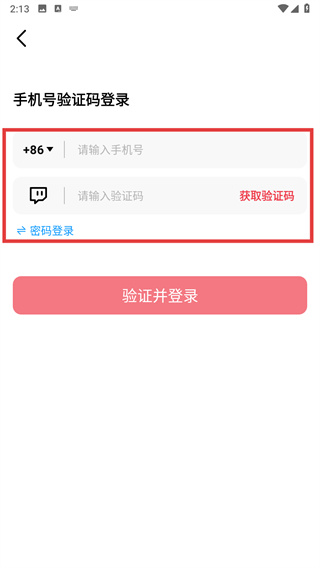 3、在手機號驗證碼登錄頁面,輸入手機號,點擊【獲取驗證碼】,輸入收到的驗證碼。