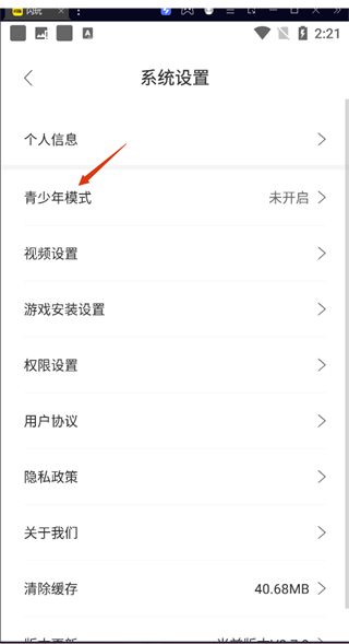3、在系統(tǒng)設(shè)置頁面點擊【青少年模式】,進(jìn)入青少年模式設(shè)置頁面。
