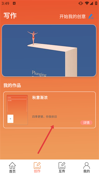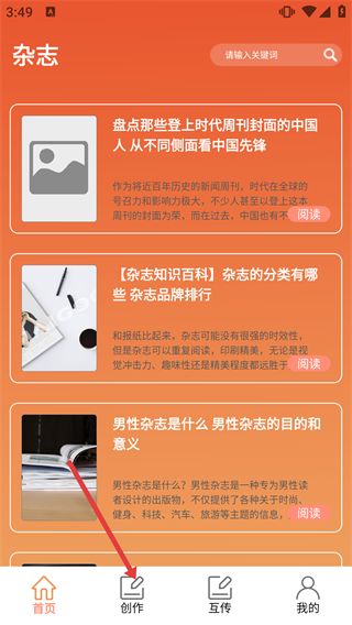 1、打開雜志APP首頁,點擊底部【創(chuàng)作】,進入創(chuàng)作頁面,可查看“我的作品”板塊。