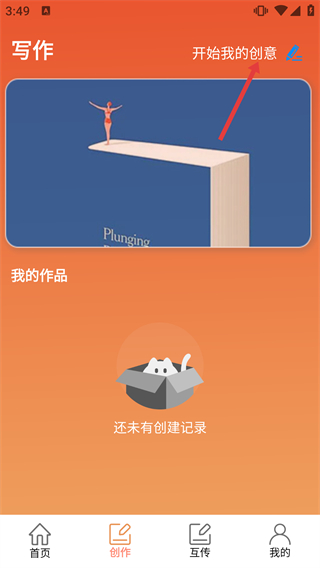 2、在創(chuàng)作頁面,點擊右上角【開始我的創(chuàng)意】,進入雜志創(chuàng)作的編輯頁面。