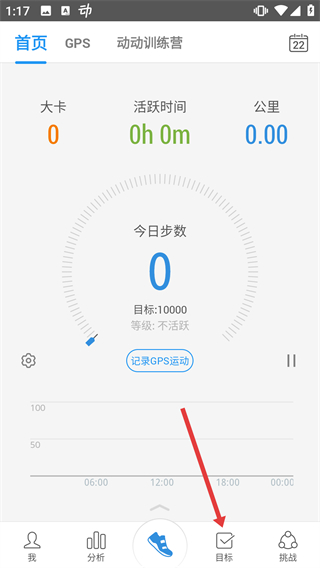 1、進(jìn)入動(dòng)動(dòng)訓(xùn)練營首頁,點(diǎn)擊底部【目標(biāo)】選項(xiàng),進(jìn)入包含目標(biāo)設(shè)置功能的我的目標(biāo)頁面。