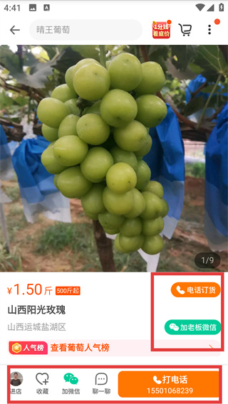 4、在商品詳情頁(yè)可通過(guò)【電話訂貨】【加老板微信】或【打電話】等方式,與商家取得聯(lián)系并完成訂貨購(gòu)買操作。
