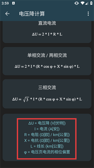 3、詳細(xì)公式說明對每種計算方法提供原理解析,幫助用戶理解計算過程并掌握相關(guān)電氣專業(yè)知識要點(diǎn)。