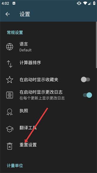 3、在設(shè)置頁面的“常規(guī)設(shè)置”板塊下,點(diǎn)擊【重置設(shè)置】選項(xiàng),觸發(fā)重置操作的確認(rèn)彈窗。