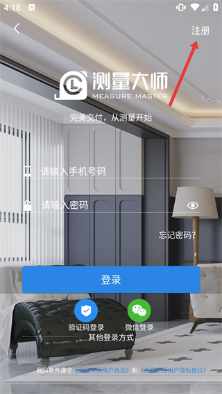 2、進入【測量大師-MEASUREMASTER】登錄頁,點擊【注冊】按鈕創(chuàng)建新賬號。