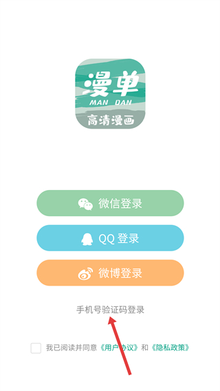 2、進入【漫單】登錄頁,可選【微信登錄】-【QQ登錄】-【微博登錄】,也能點擊【手機號驗證碼登錄】走短信驗證流程。