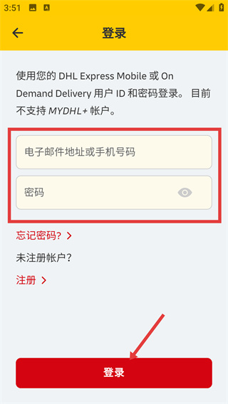 1、在【登錄】頁面輸入【電子郵件地址或手機號碼】與【密碼】,確認信息無誤后,點擊頁面底部的【登錄】按鈕,完成賬號登錄操作。