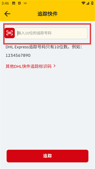 3、在【追蹤快件】頁面,留意追蹤號碼為10位數(shù)的提示,點擊輸入框,準備填寫對應的快件追蹤號碼。